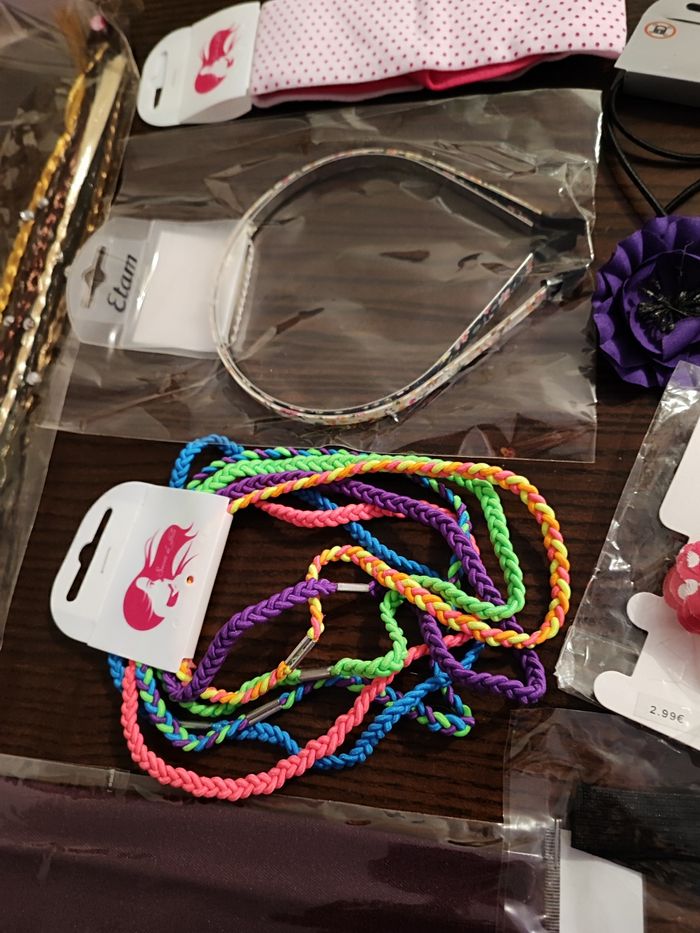 Lot d'accessoires cheveux fille Plus de 10 articles Élastique serre tête pinces Il y en a a l'unité et en lot Le tout coloré pour les petites filles Il y en a sans marque Serre-tête Etam et orchestra