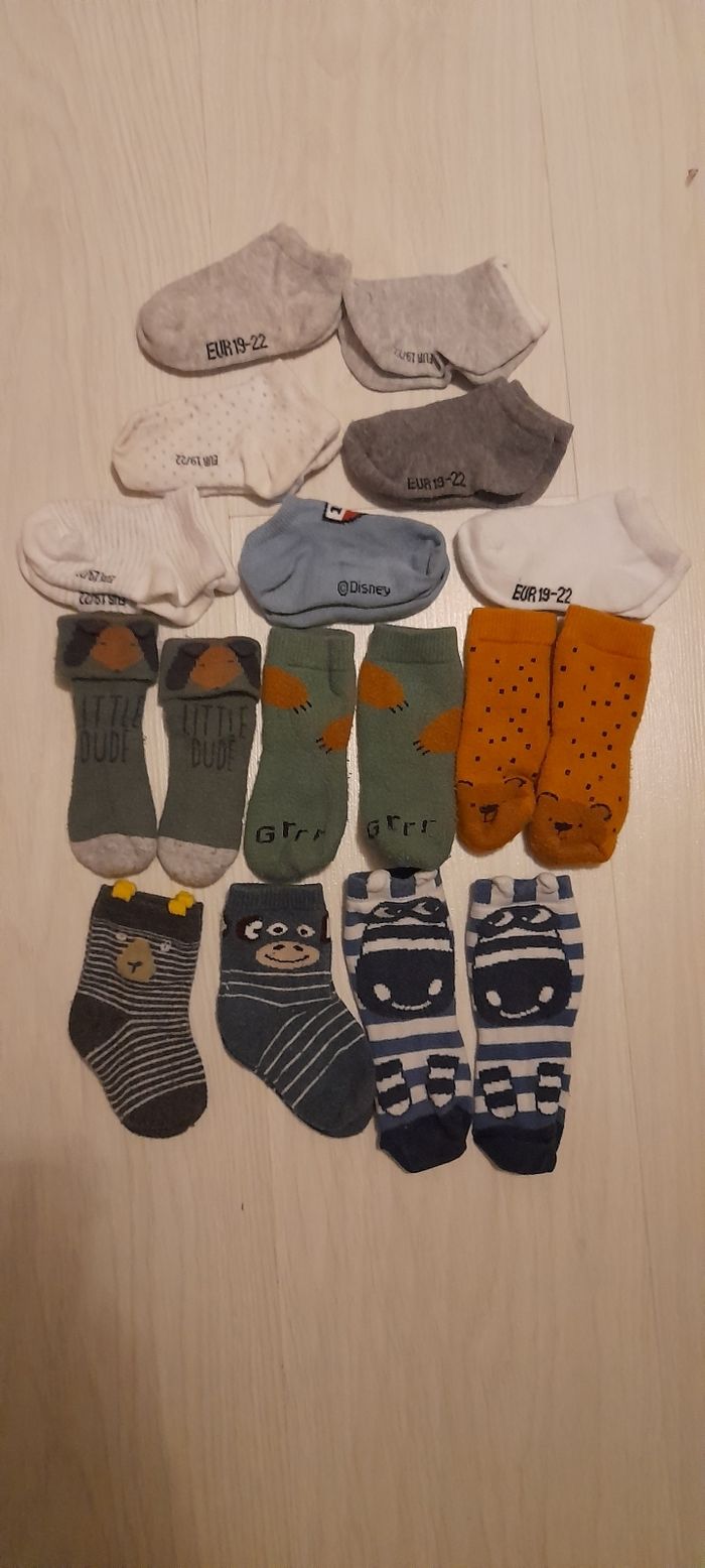 Lot de 13 paires de chaussettes 19/22 dont 2 avec antidérapants ( voir photo)