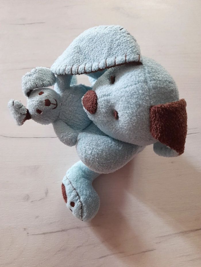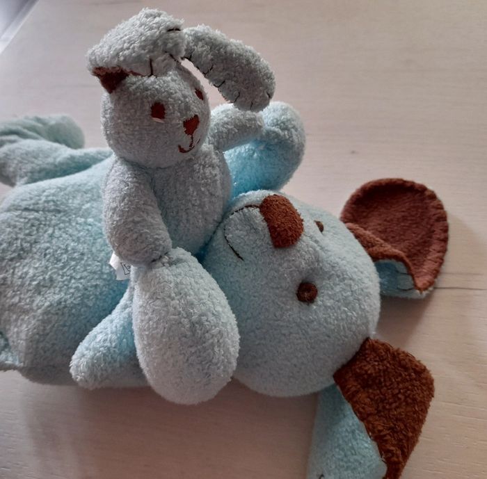 Peluche maman lapin avec son bébé 19cm Couleur turquoise Peluche bien utilisée (peluchée) mais peut encore faire le bonheur d'un enfant #peluches_et_doudous_titi91630