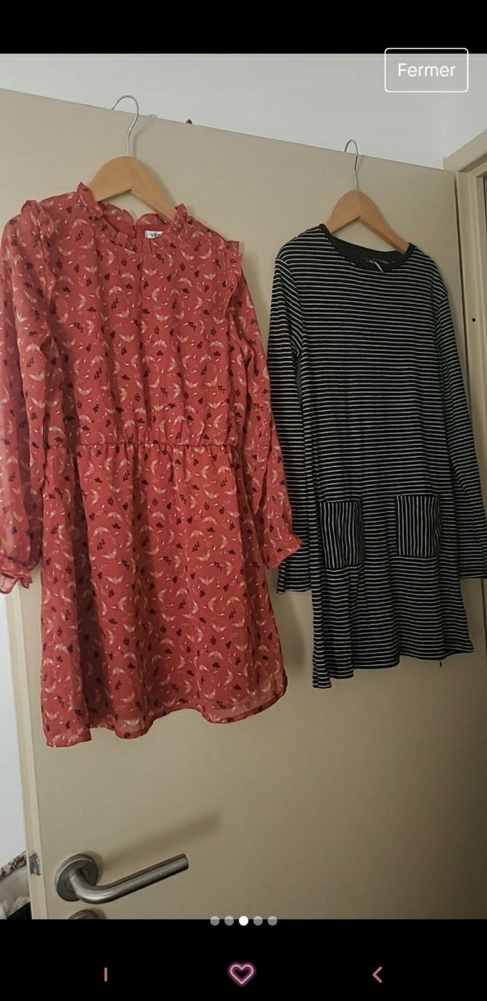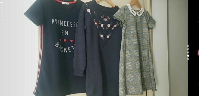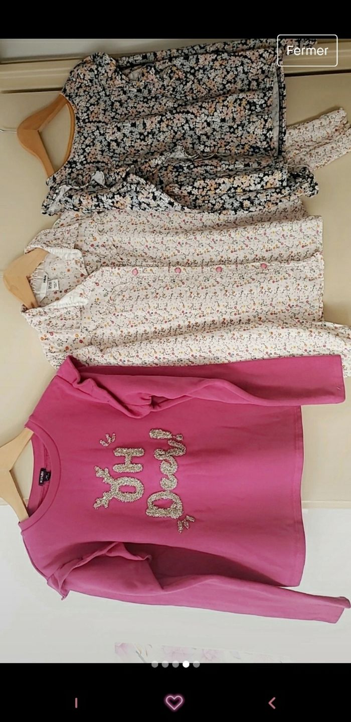 Lot de 4 jeans 8 ans 2 jeans 10 ans 7 robe 8 ans, 2 robe 10 ans 9 haut manche longue( pull chemise blouse) 1 veste style perfecto en dain rose claire.