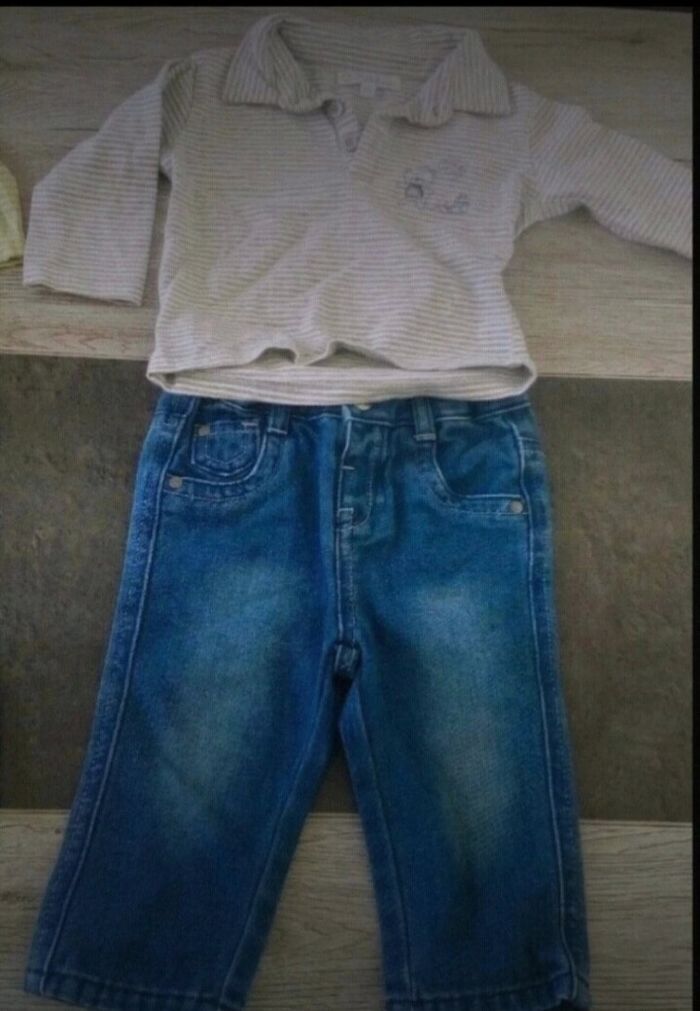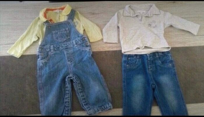 Lot de vêtements 9 mois, kiabi. Comprenant 1 salopette , 1 jean, 2 polos. En très bon état.