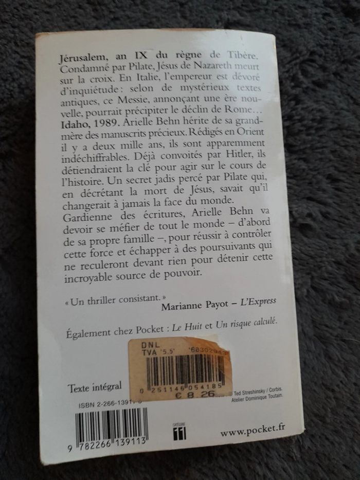 Livre de Katherine Neville Le cercle magique Très bon état Pocket Les coins sont un peu abîmés Achetés 8€26 Jérusalem, an IX du régne de Tibère. Condamné par Pilate, Jésus de Nazareth meurt sur la croix. En Italie. l'empereur est dévoré d'inquiétude : selon de mystérieux textes antiques, ce Messie, annonçant une ère nou- velle, pourrait précipiter le déclin de Rome... Idaho, 1989. Arielle Behn hérite de sa grand- mere des manuscrits précieux. Rédigés en Orient il y a deux mille ans, ils sont apparemment indéchiffrables. Déjà convoités par Hitler, ils détiendraient la clé pour agir sur le cours de l'histoire. Un secret jadis perce par en décrétant la mort de Jésus, savait qu'il changerait à jamais la face du monde. Gardienne des écritures, Arielle Behn va devoir se méfier de tout le monde d'abord de sa propre famille cette force et echapper à des poursuivants qui ne reculeront devant rien pour détenir cette incroyable source de pouvoir. Lot et Réduction possible :)