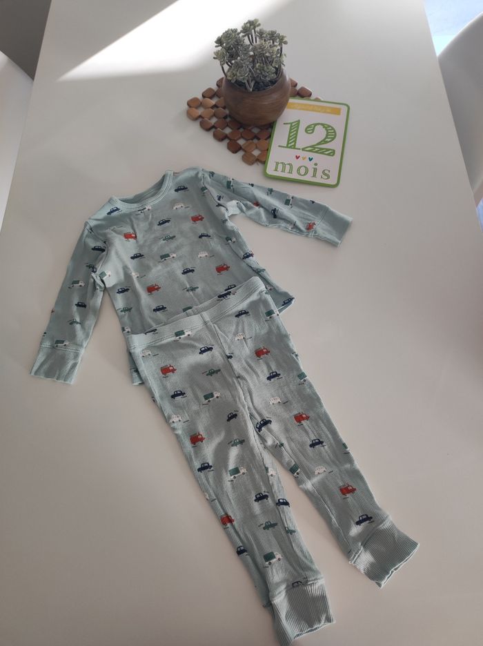 Ensemble pygama fin Kiabi, taille 12 mois et en très bon état, couleur vert d'eau.