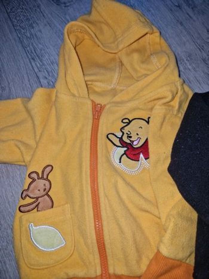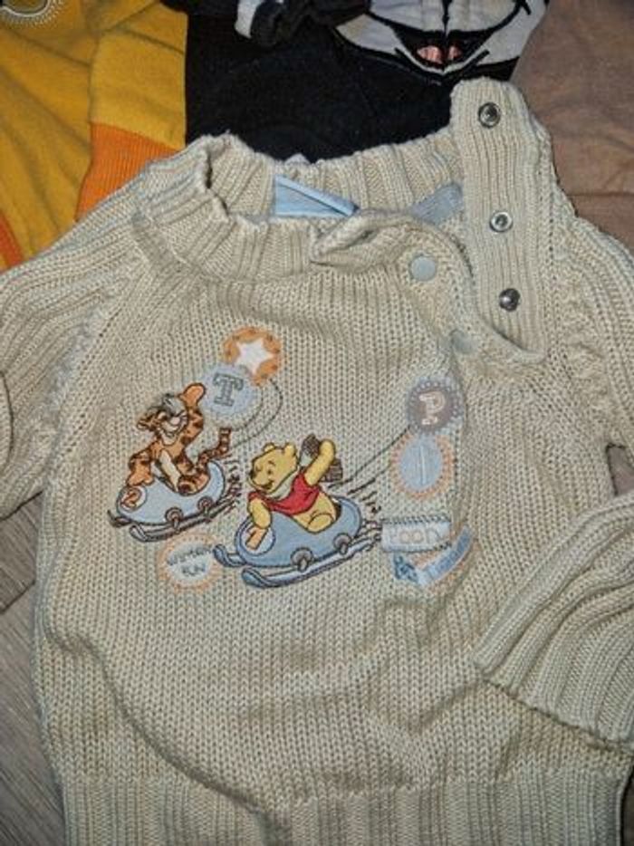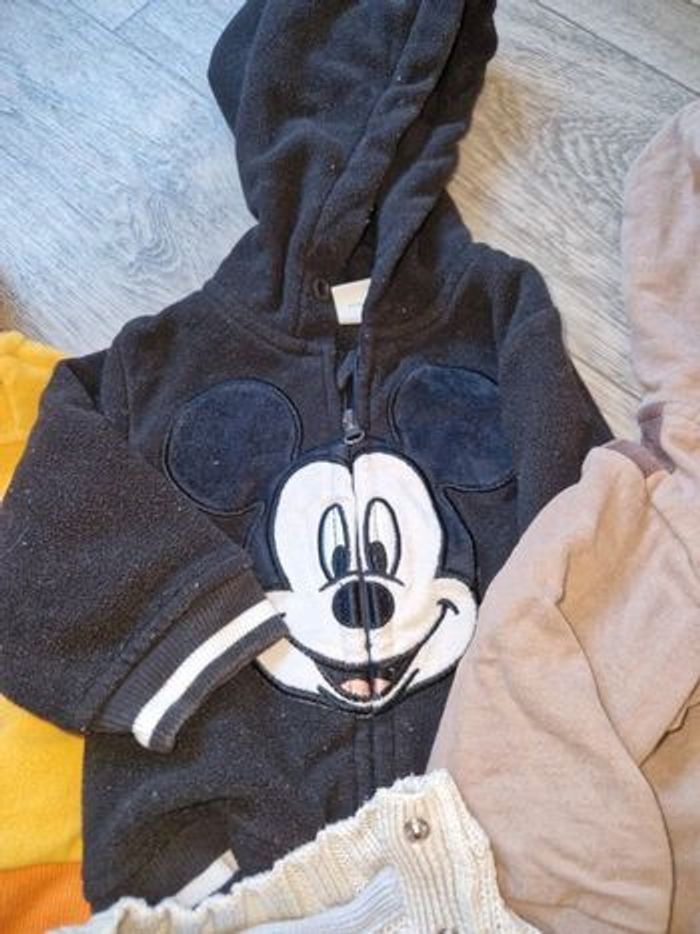 Vend un jolie lot de 3 gilets et un pull chaud disney en taille 6 mois 2 polaires une mickey et 1 winnie 1 gilet assez chaud winnie tigrou porcines et bourriquet présent dessus 1 petit pull assez porté winnie et tigrou