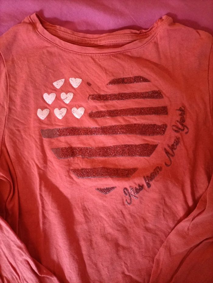 Tee-shirt Vertbaudet 6 ans motif coeur pailleté imprimé