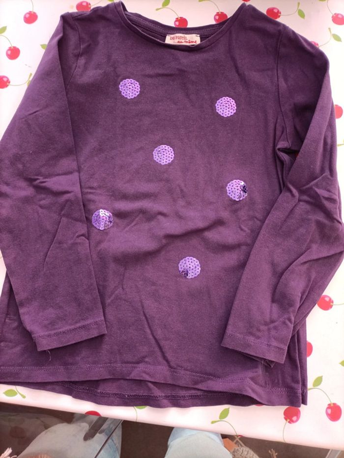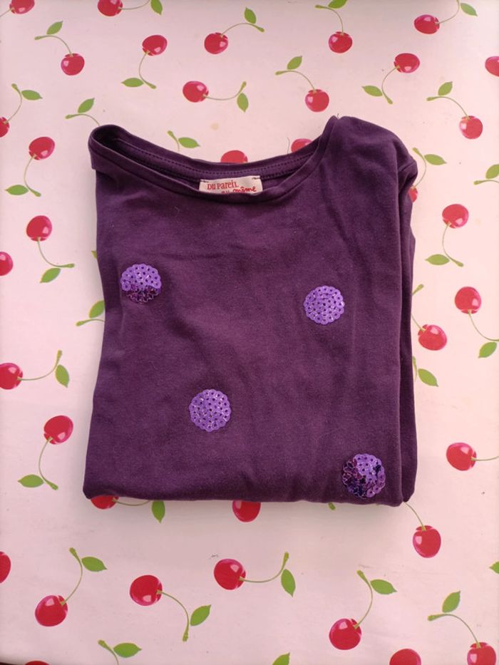 Tee-shirt ML violet avec sequins - photo numéro 1