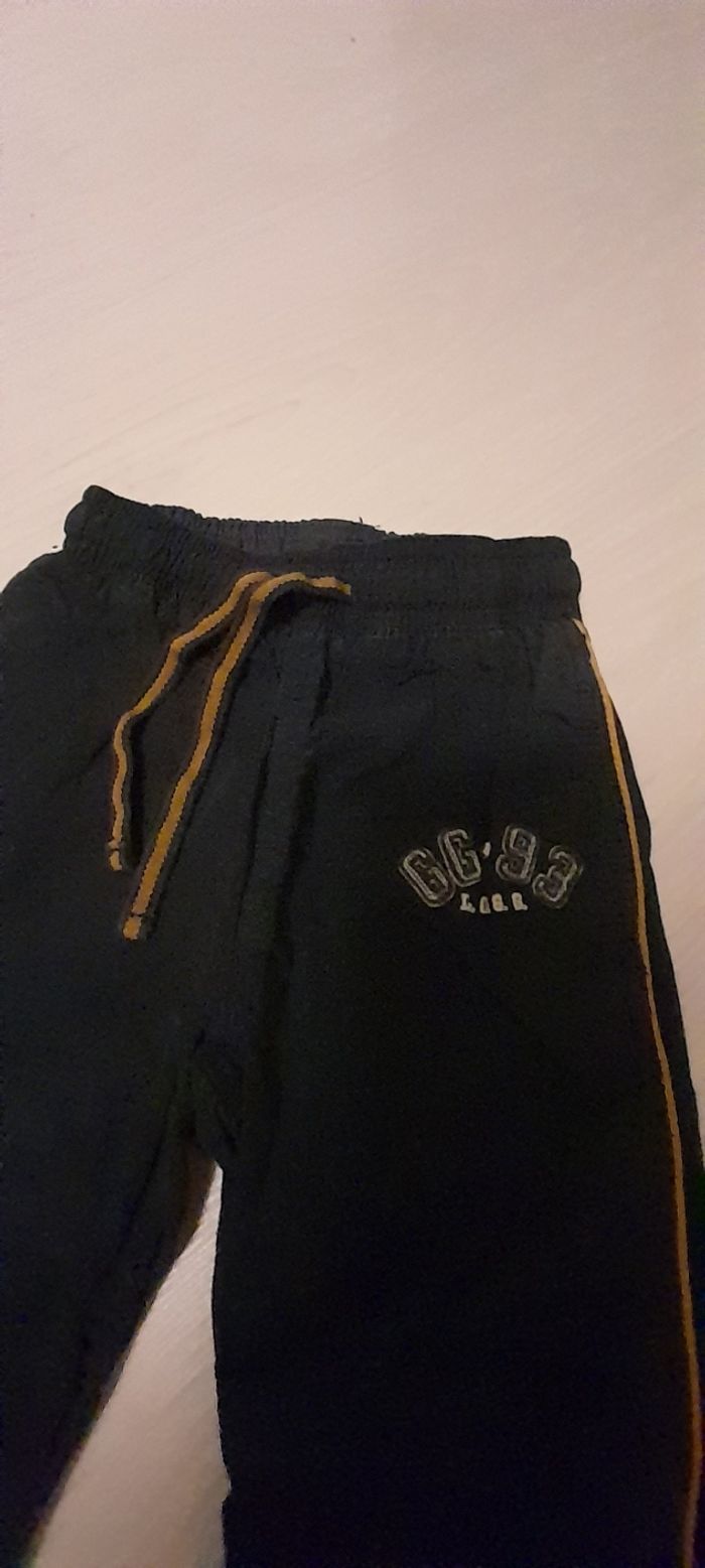 Pantalon T 2 ans Marque H&M Couleur bleu marine et liseré ocre Taille élastique avec cordon Possibilité de resserrage bas de jambes par l'intérieur ( voir photo) 70% coton et 30 % Polyamide Très très bon état