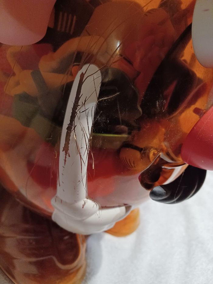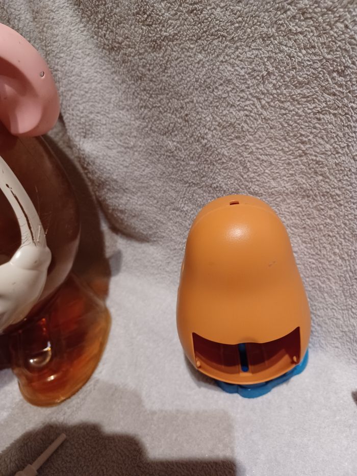 Un moyen en plus mais il lui manque le cache à l arrière. Le grand a des grosses rayures faites avec des ciseaux ✂️ 😲 Accessoires (sans compter ceux sur le grand): 6 paires de chaussures 6 oreilles et 2 oreilles d éléphant 7 paires d yeux 👀 6 nez (dont une trompe et un bec) 2 dents 1 bouche 👄 1 langue 😝 1 moustache 3 chapeaux 9 bras 2 ballons Mickey