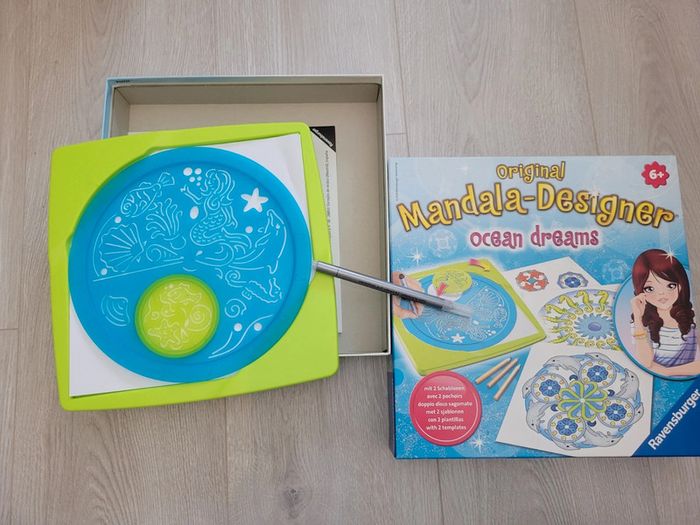 Avec ces 2 disques l enfant peut réaliser des mandalas multiples thème océan.