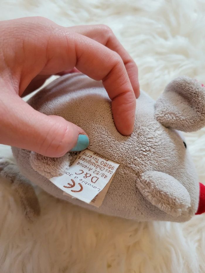 Souris avec un grelot à l intérieur. Reste dans la boîte à peluche