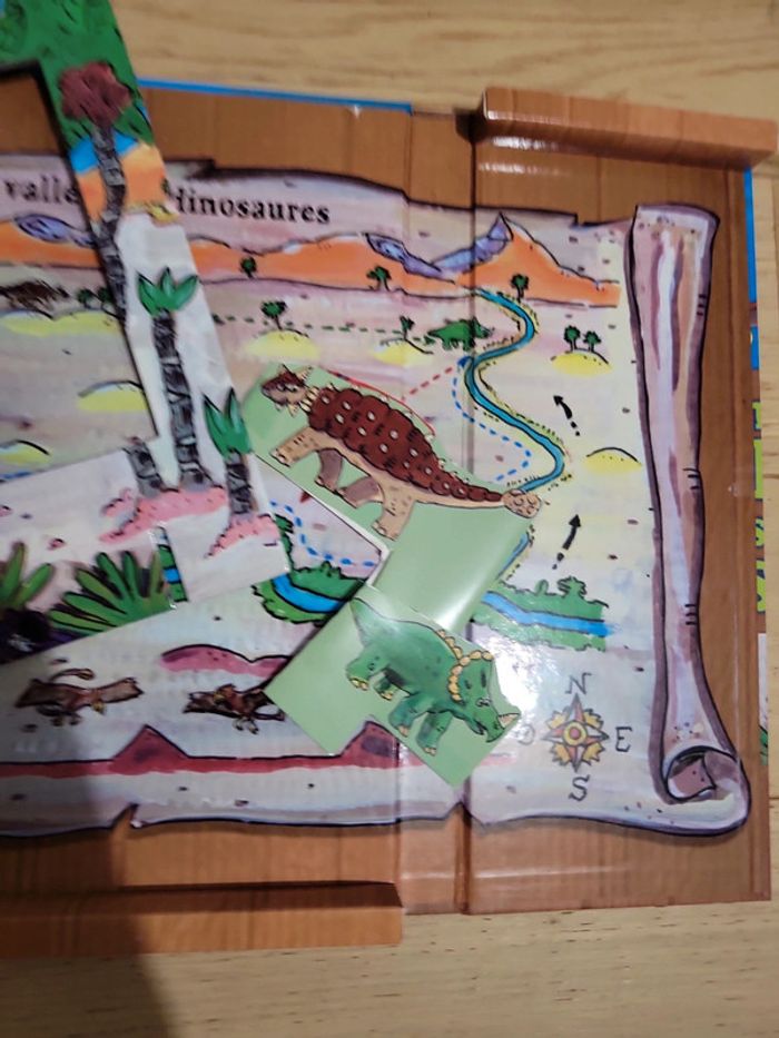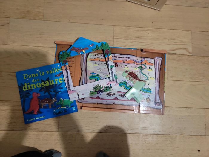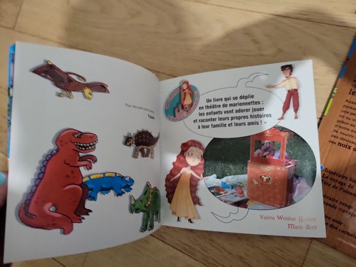 Coffret dinosaure ,2 marionnettes en papier, un livre et un théâtre.