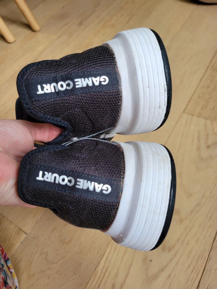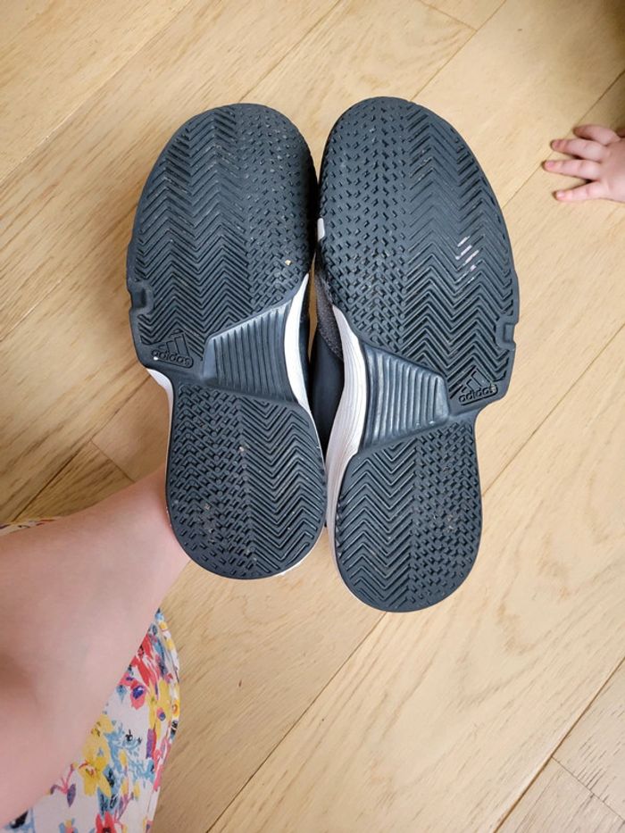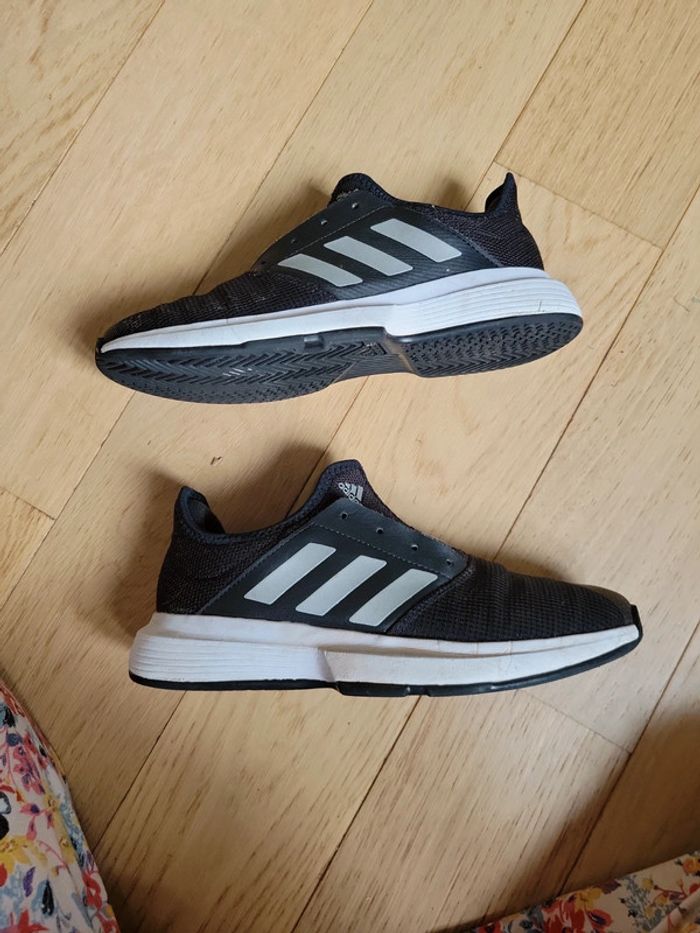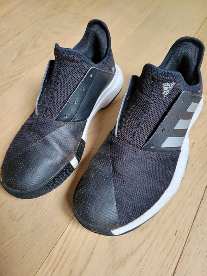 Adidas pour le tennis niveau intermédiaire. Utilisé aussi sur terre battue ,elles sont quand même très propre car au bout d un mois il a changé de taille