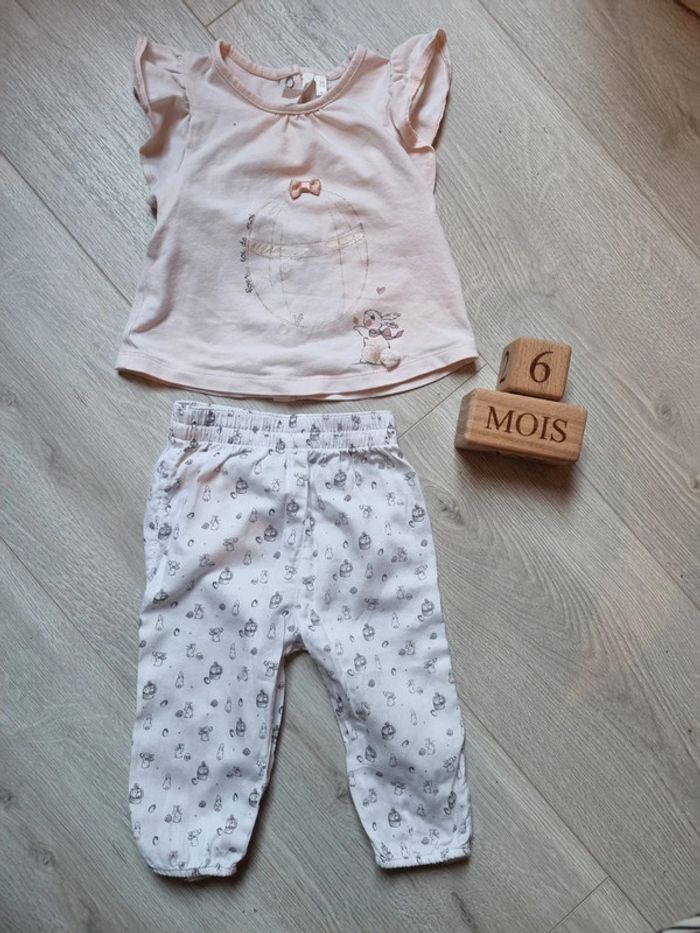 Ensemble constitué d un pantalon fluide et d un tee shirt imprimé lapin