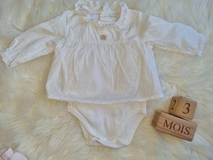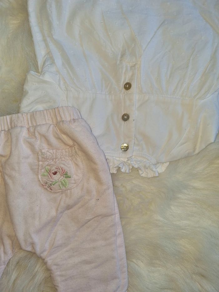 Ensemble constitué d un body blouse intégrée avec col , D un pantalon molletonné velours. 1ere main, état neuf porte 1fois pour une séance photo
