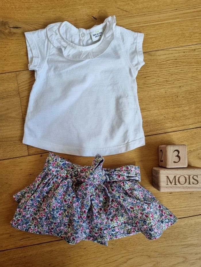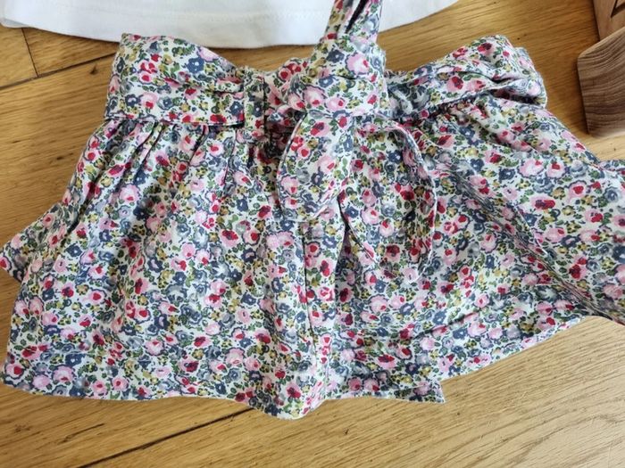 Ensemble constitué d un tee shirt col fronce et d une petite jupe style liberty doublée. Peu porté