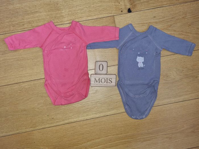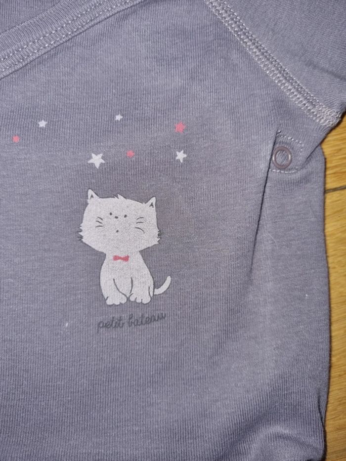 Lot de 2 bodies ouverture cache coeur. Thème chat. Peu porté