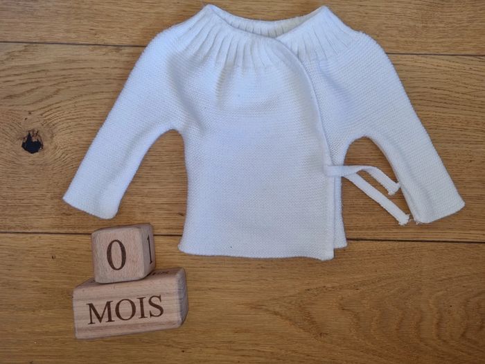 Tricot idéal pour la maternité. Mon bébé ne l a pas porté car ma maman m en a cousu . Taille 0 1 mois