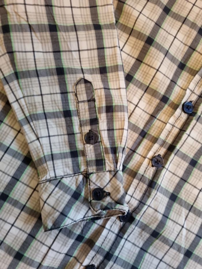 Chemise à carreaux, manches retroussables. Neuf ,mon fils n a jamais voulu la mettre.