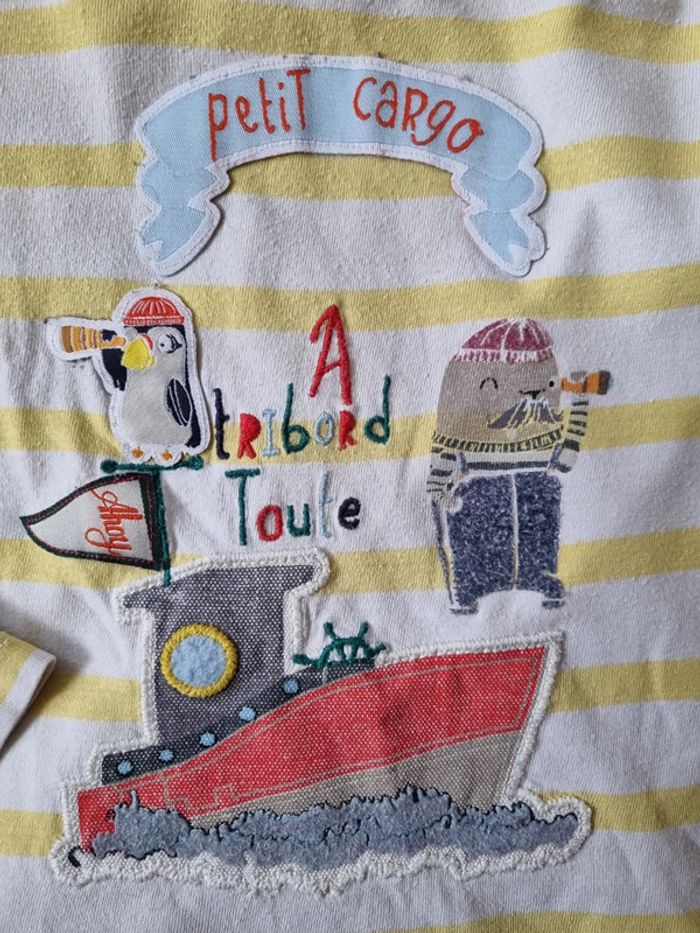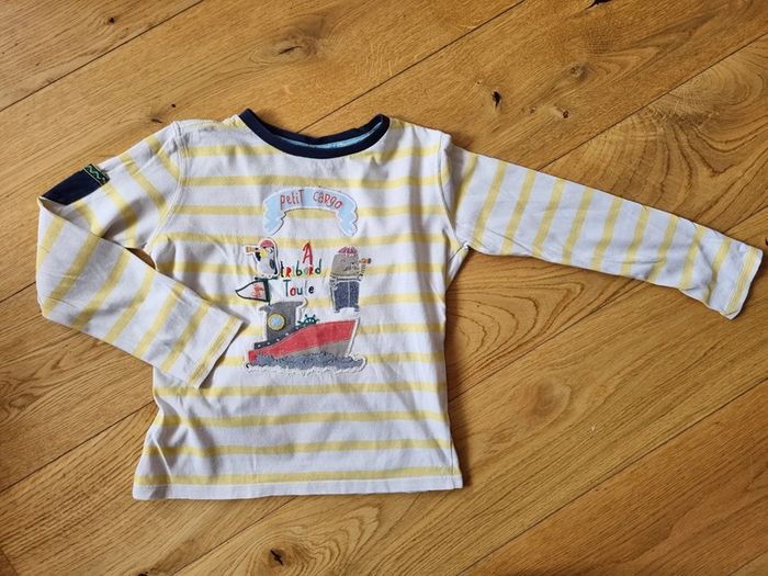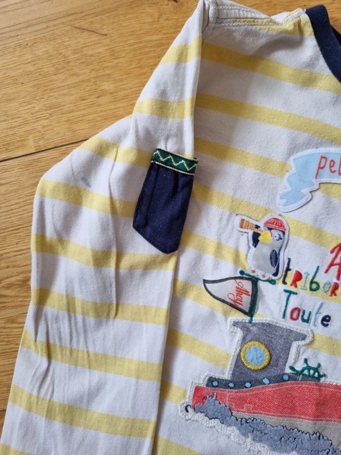 Tee shirt marinière jaune bien porté. Une tache à la manche,voir photo.