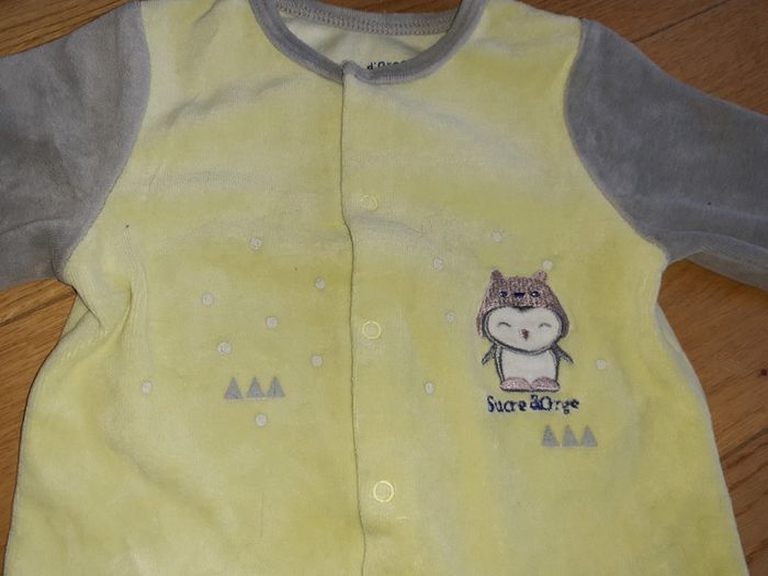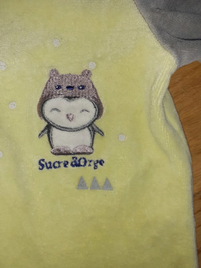 Pyjama en velours ouverture devant. Avec petite broderie pingouin.