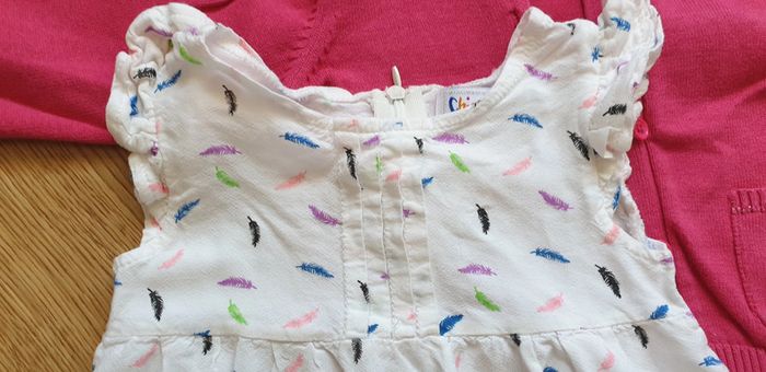 Ensemble constitué d une robe fluide avec volants et d un gilet. Juste lavé. Trop petit. Je fais des prix sur les lots