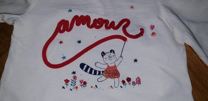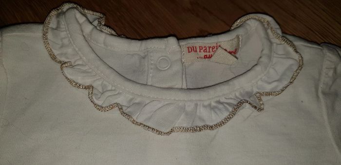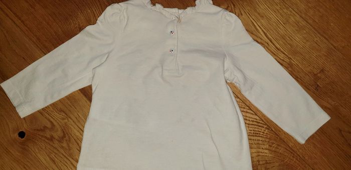 Tee shirt état neuf. Manches longues avec col fronce et broderies. Je fais des prix sur les lots #pomponette2503 12mois# pour voir mes autres articles de cette taille dans mon dressing