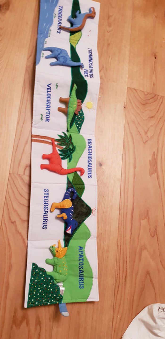 Livre fresque accordéon. Les dinosaures se déplacent à l aide de scratch, 2 ont des pouet pouet. Des couleurs permettent à l enfant de remettre le dinosaure à la bonne place. Neuf dans son emballage d origine. Je fais des prix sur les lots alors n hésitez pas