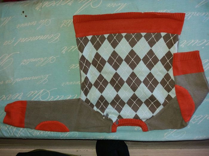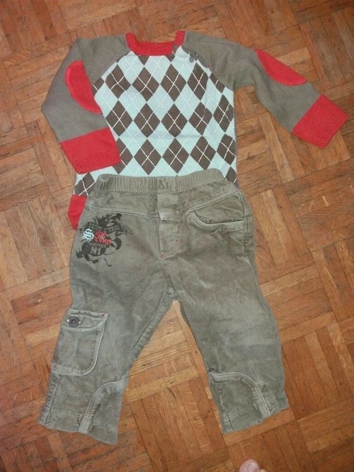 Ensemble composé d un pantalon velours et d un pull.