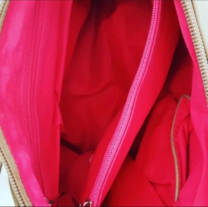 Sac bandoulière Beige foncé marron Claire Intérieur rose 22x31cm Neuf