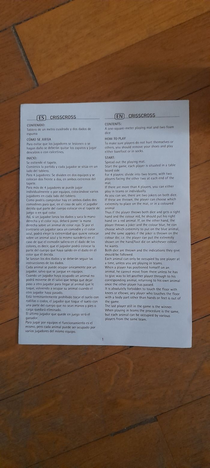 Jeu de société CRISS CROSS Jeu de placement A partir de 4 ans Peut être utiliser à l'intérieur où l'extérieur 1 grand tapis 2 grand dés entre mousse Très très bon état
