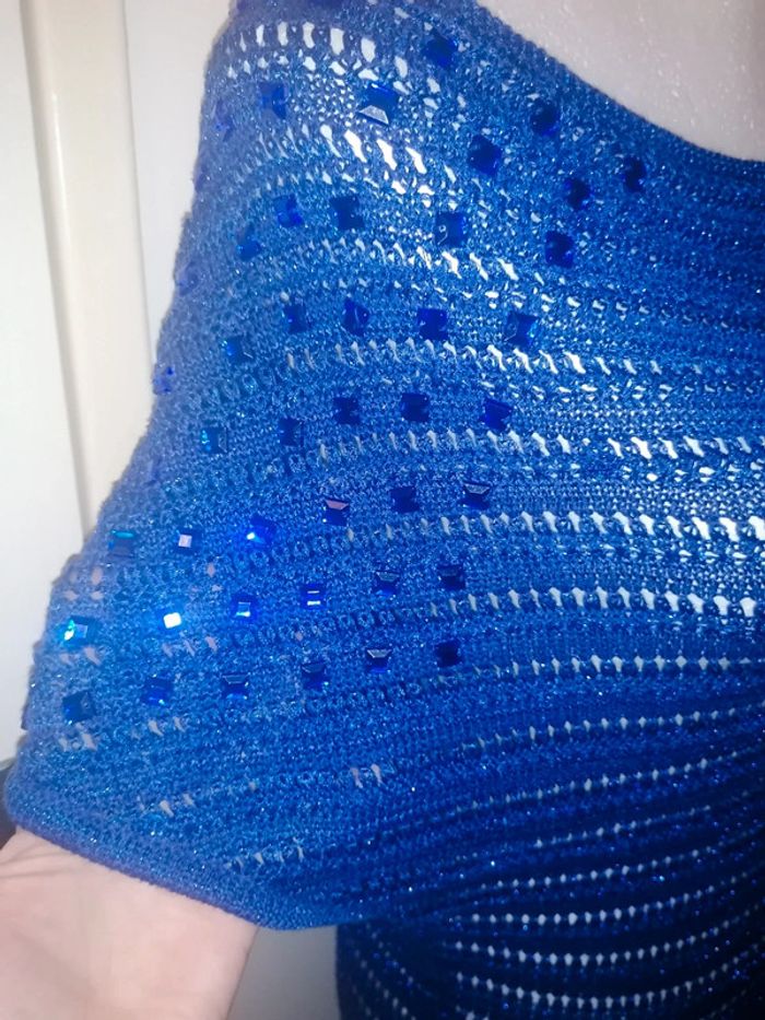 Bleu électrique avec strass plus beaux en vrais quand photos jamais porté