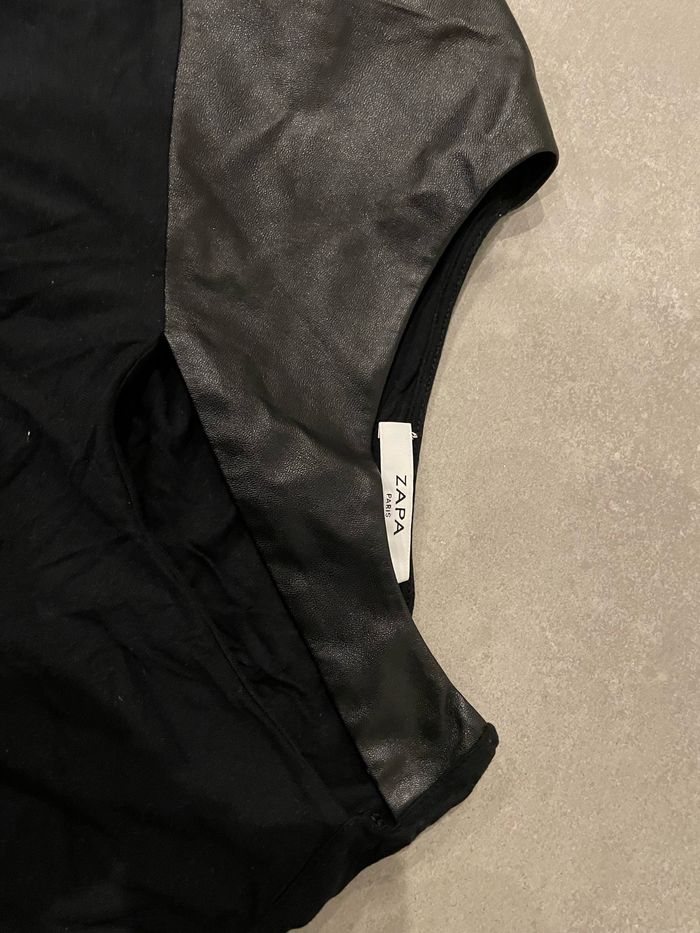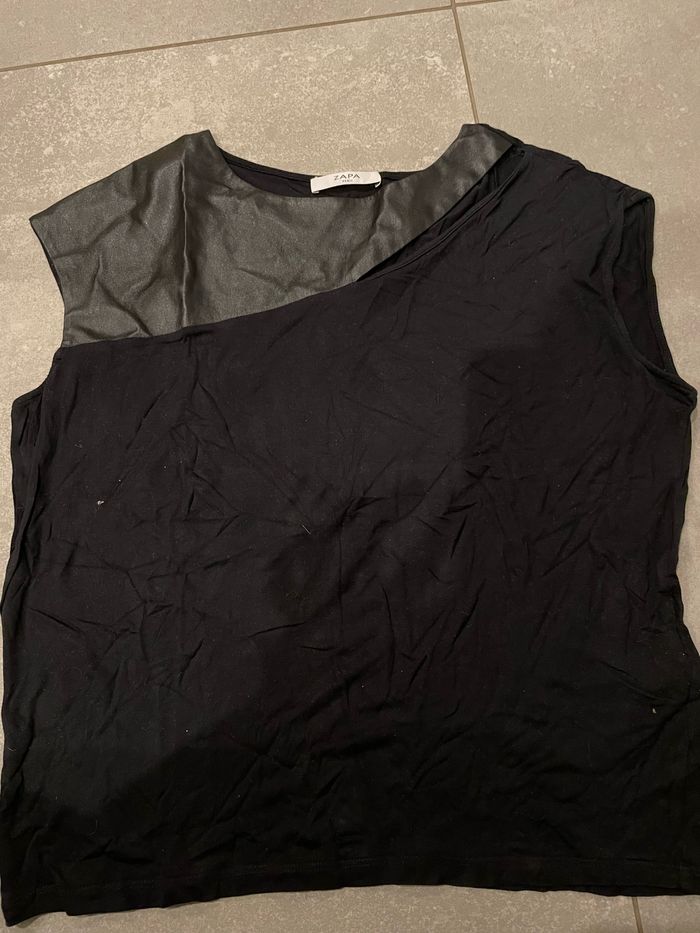 Débardeur femme zapa noir en taille 1 avec haut en cuir en ouverture voir photo