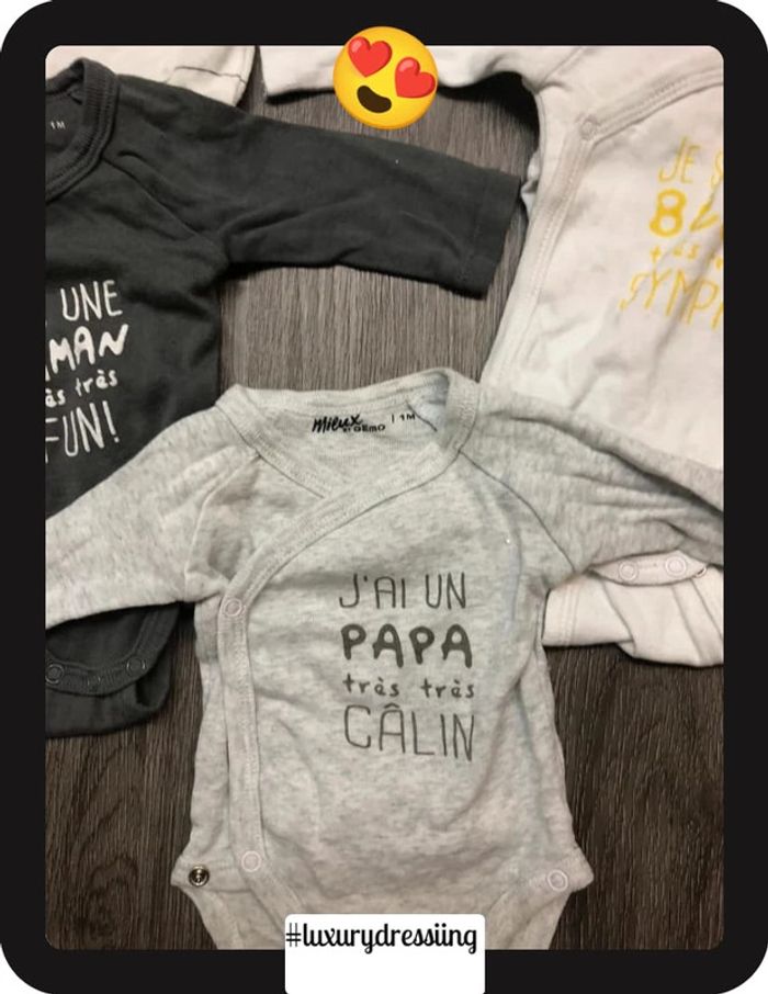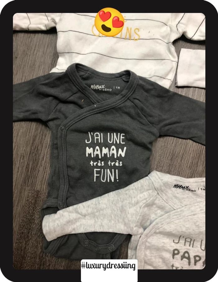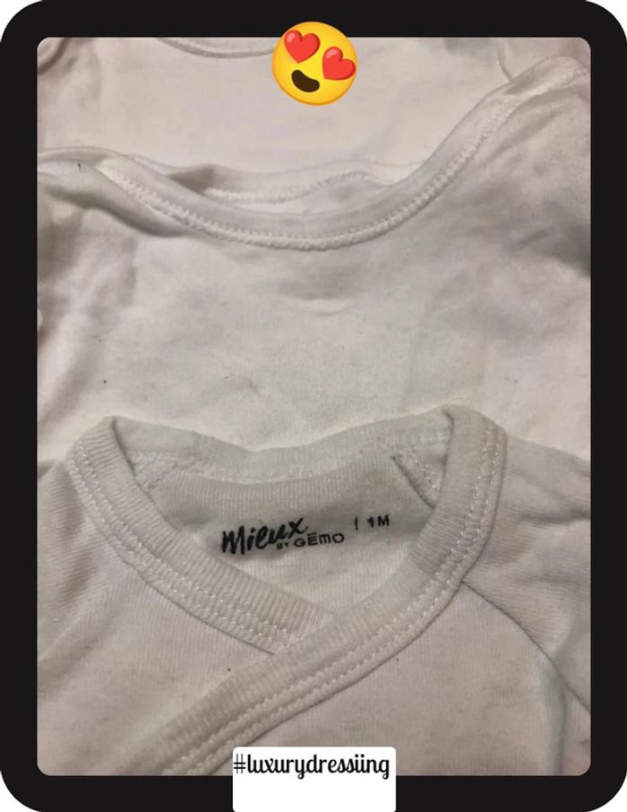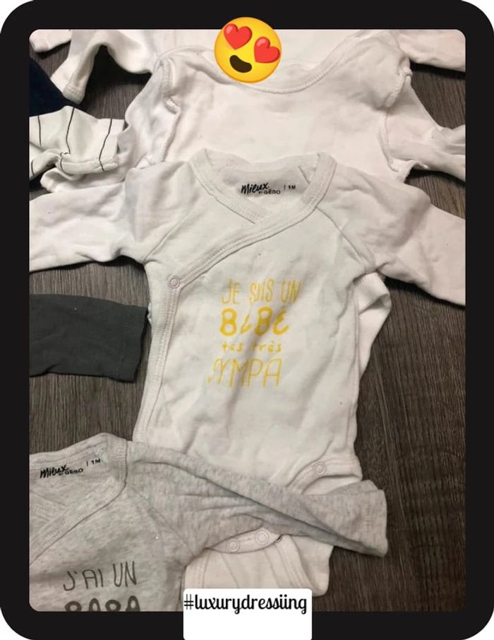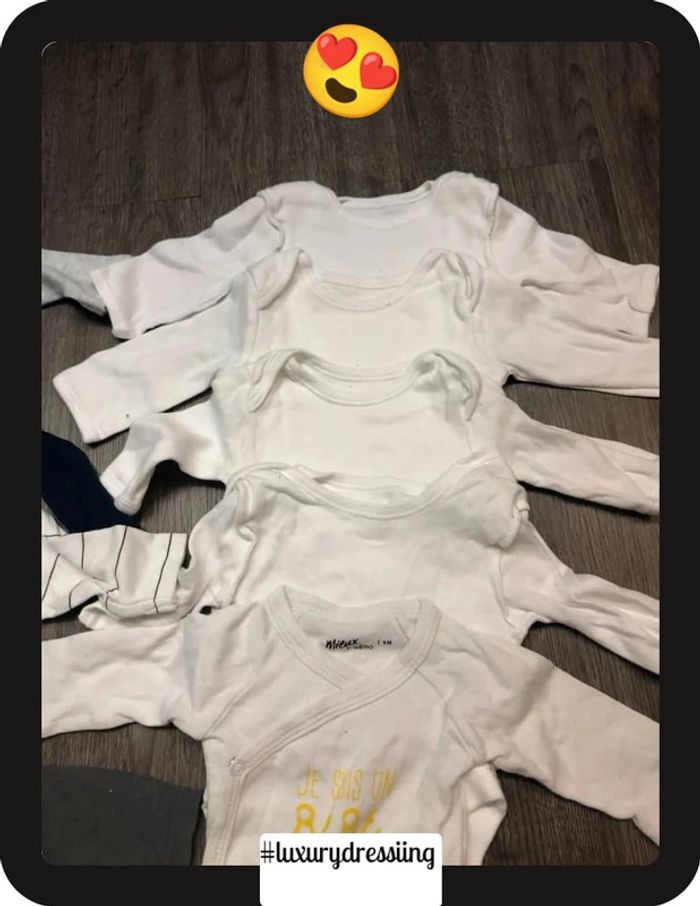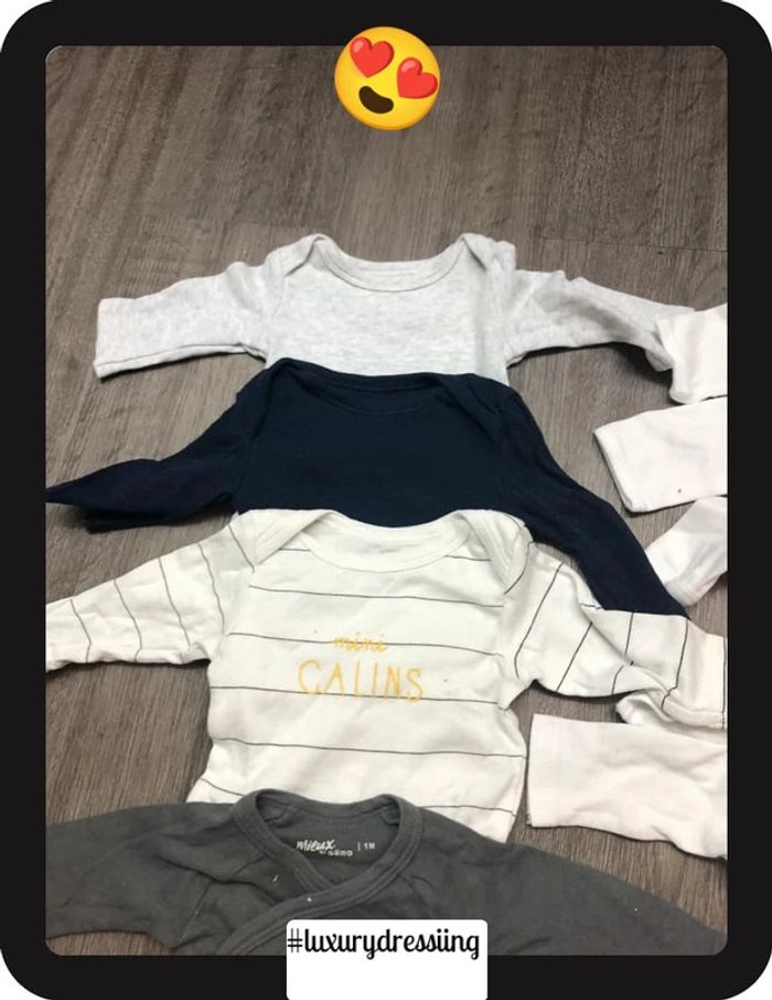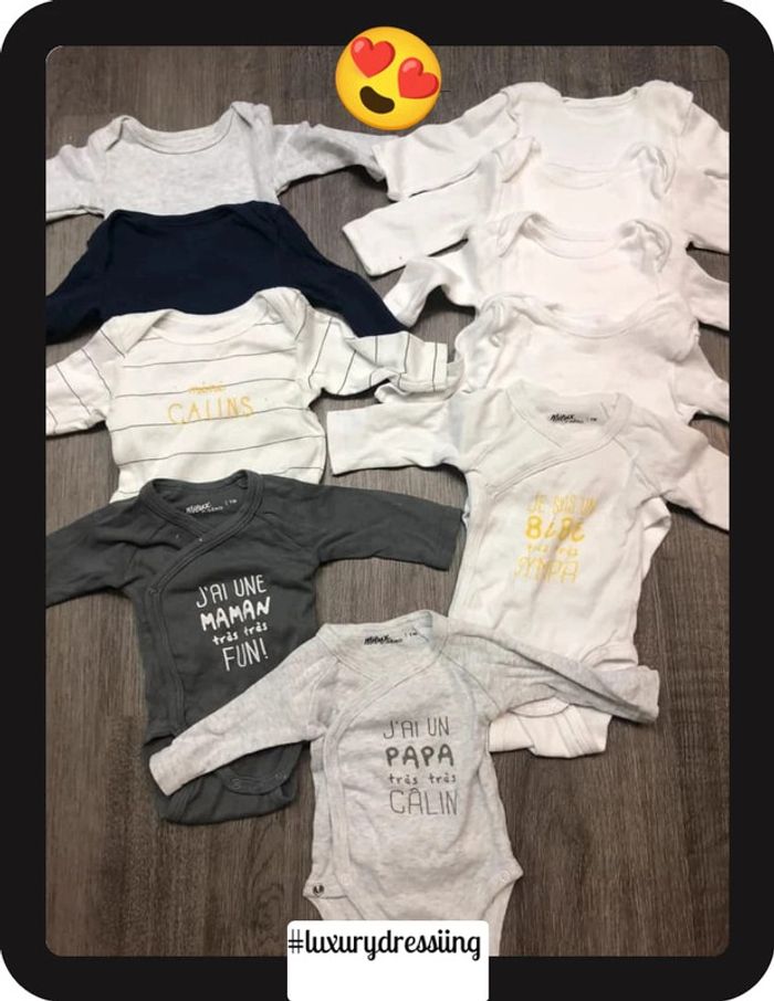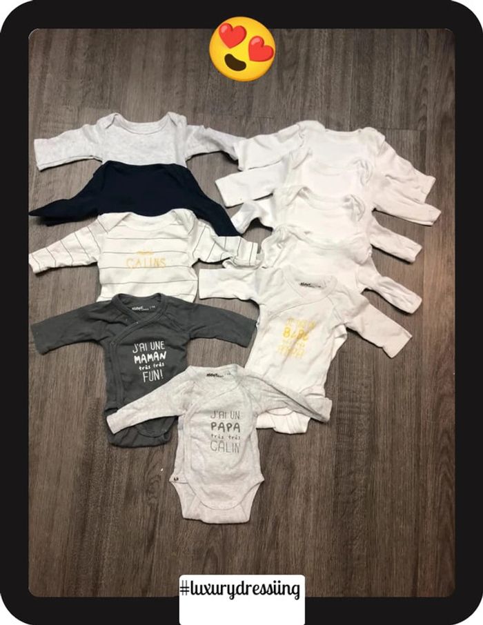 Lot 10 bodies 👶 1mois 50/56 cm 🧸 manche longue Tout les bodies sont neuf jamais porté ✅ Gémo , H&M, kiabi #luxurydressiingbodies1mois