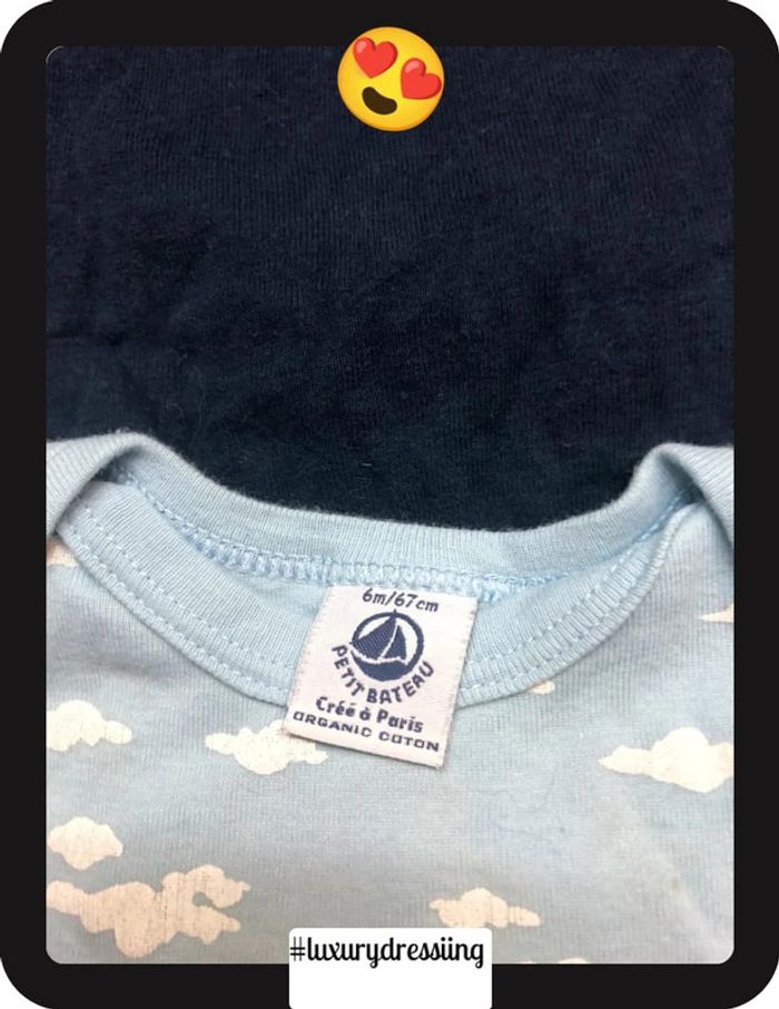 Lot de 9 bodies manche courte pour bébé 👶 taille 6mois 🧸 En très bonne état ✅ Petit bateau , obaibi, orchestra, kiabi, tex 🛍️