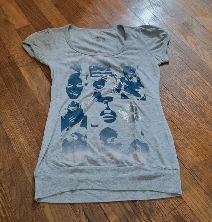 haut manche courte couleur gris imprimé bleu clockhouse girls taille 36 S peux convenir également pour une jeune fille portant du 16ans très bon etat #tshirtgris #tshirt36 #hautfemme #hautfille taille36