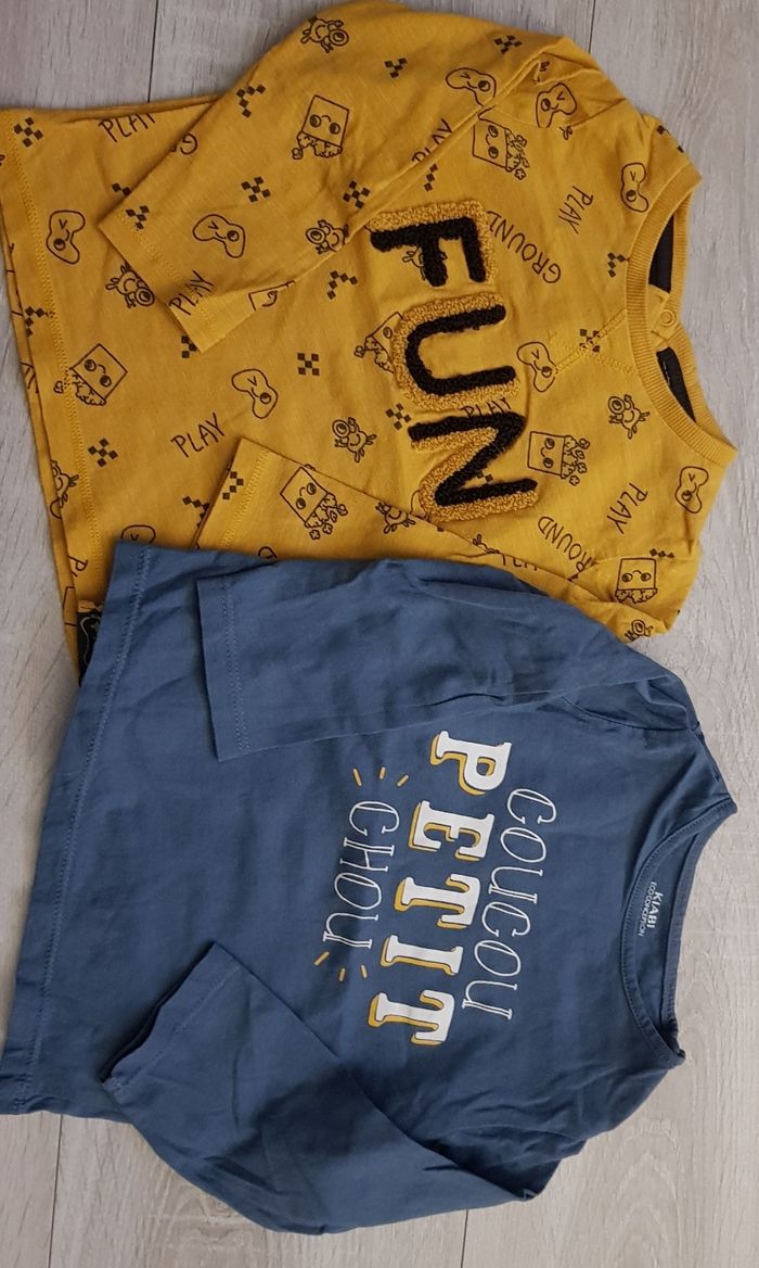 Lot de 2 t-shirt manche longue kiabi taille 18 mois en excellent état.