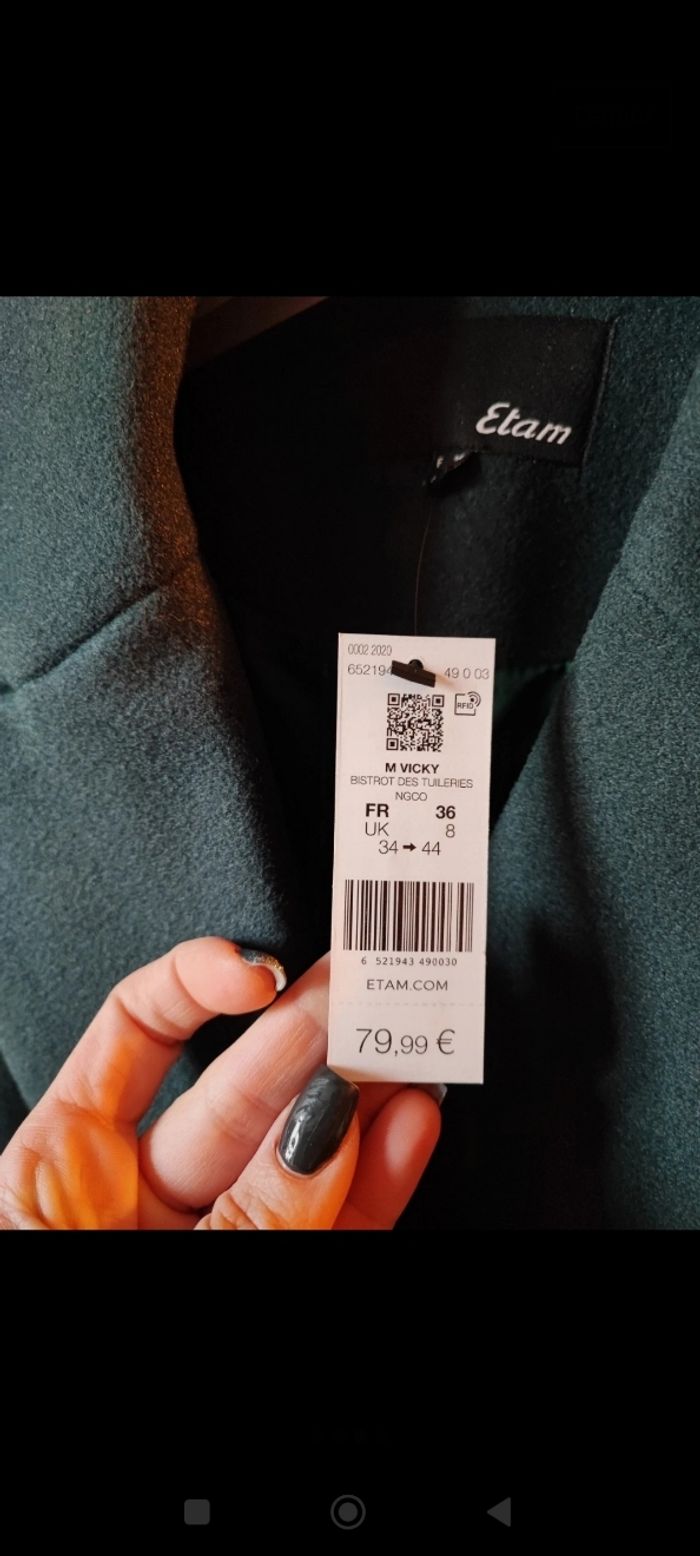 Manteau Etam taille 36 vert forêt. Tout neuf encore l'étiquette et dans son emballage .