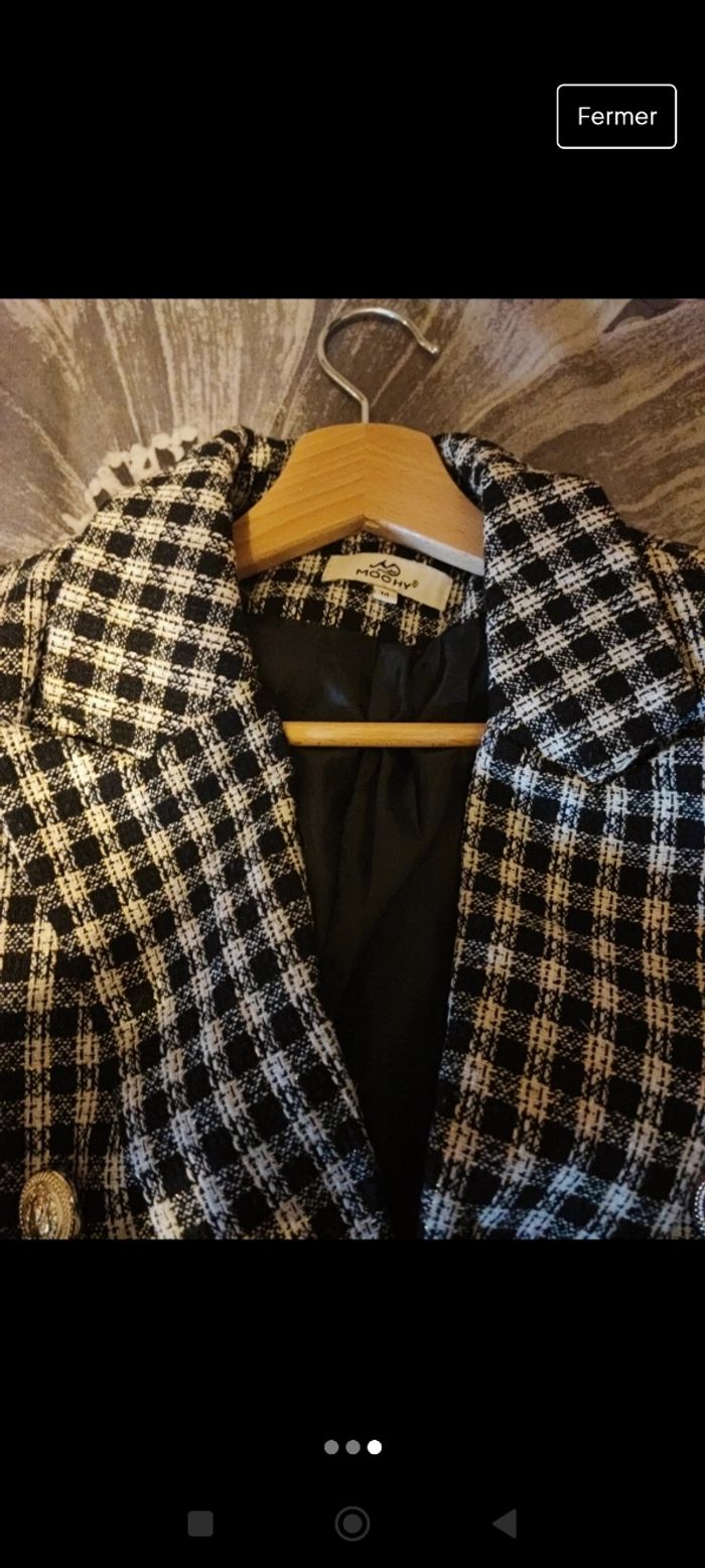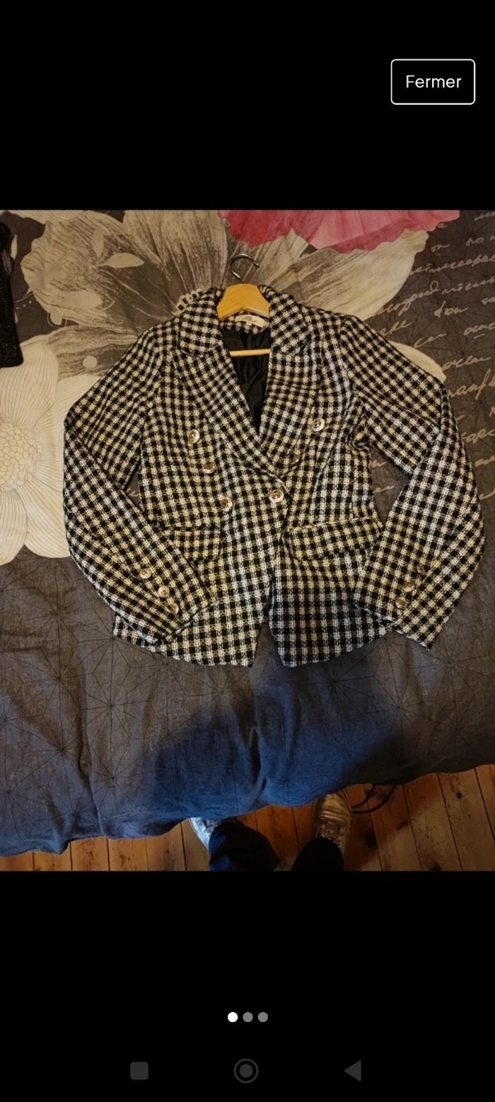 Blazer pied de poule taille m, se ferme croisé avec des gros boutons doré, jamais porté