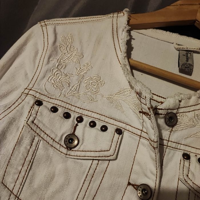 Blouson denim couleur crème avec broderies sur le devant Taille s Peu porté en parfait état
