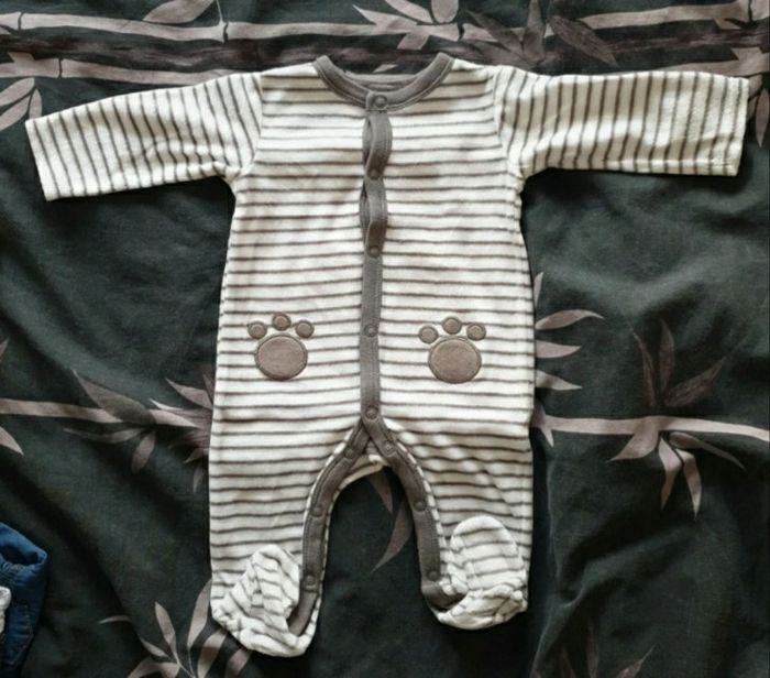 Lot de 3 pyjamas bébé en très bon état. Taille 0. Le premier taille un peu grand.
