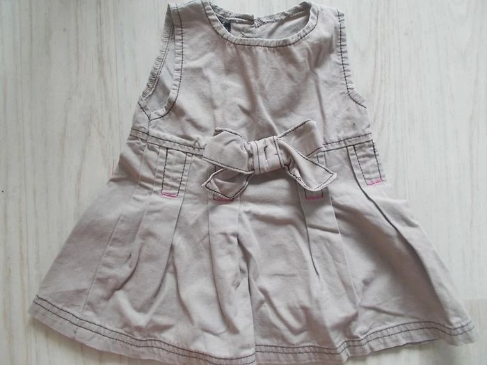 Robe bébé avec boutons sur le dos de chez LES P'TITS BABY couleur crème taille 6 mois 100% coton, repassage doux
