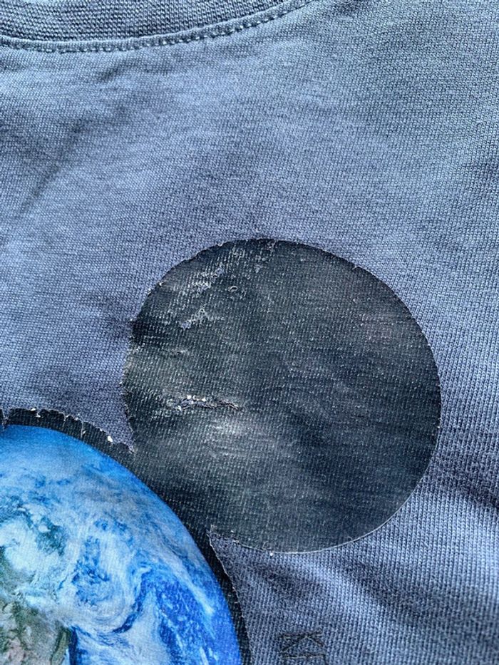 État satisfaisant, le dessin se décolle un peu et il y’ a eu un coup de fer à repasser sur l’oreille de Mickey