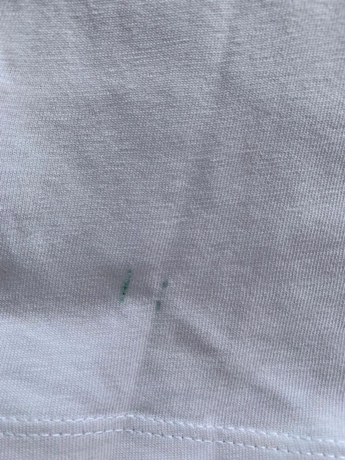 En bon état, le dessin s’est un peu décollé avec les lavages (voir photo 3) et une trace de pince à linge dans le dos (photo 4, peut peut-être partir à la machine à laver)