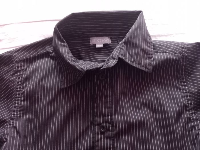 Chemise BESTWAY taille 8 ans (largeur sous aisselles : 37 cm - longueur : 48 cm), rayée noir gris