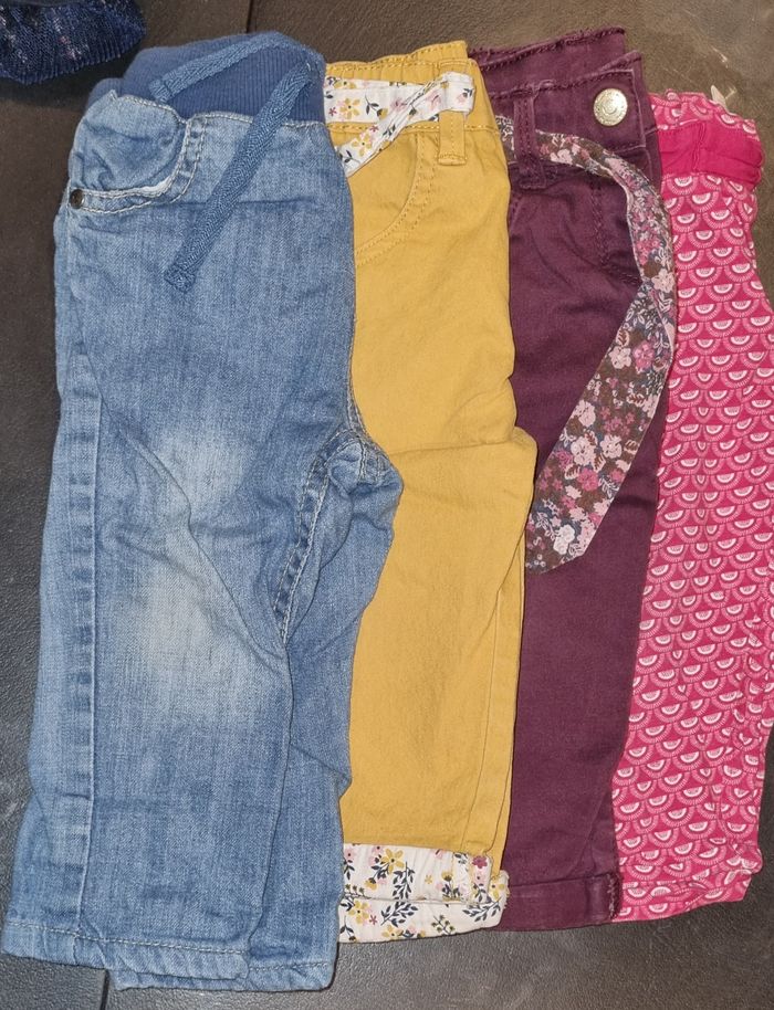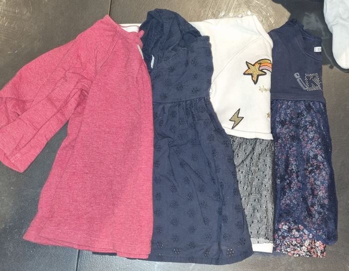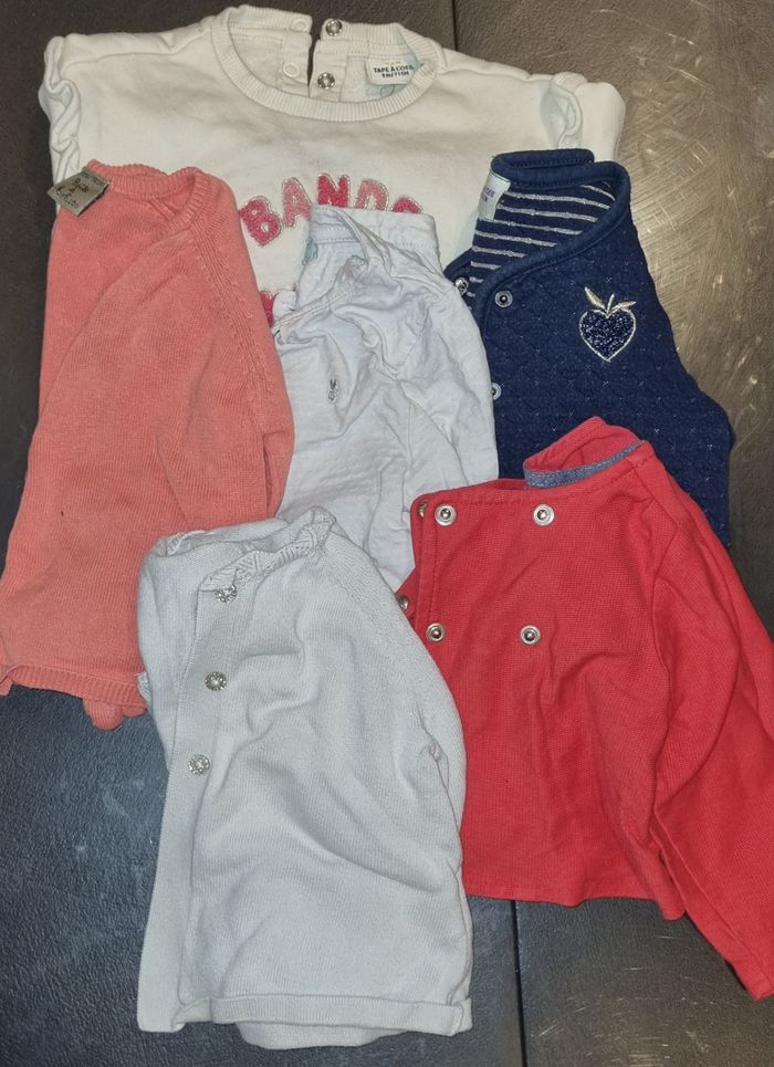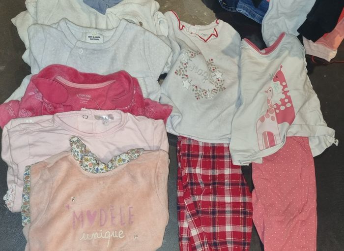Lot vêtements 12 mois fille Vend en lots vêtements 12 mois 4 pantalons 3 body manche courtes 1 pull et 5 gilets 1 jupe 4 robes 4 tee shirt manches courtes 7 pyjamas 5 leggings Et différents collants et chaussettes