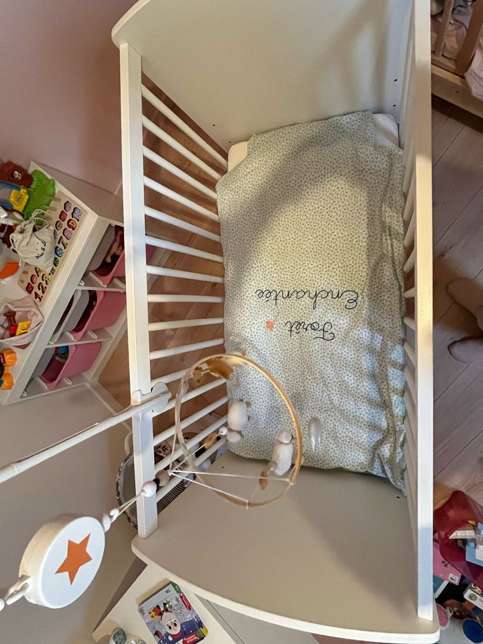 Lit bébé de la marque VERBAUDET LIGNE CONFETTI - blanc excellent état vendu avec Matelas Aubert alèse couette et housse de couette (aucune taches) Prix du lit neuf 279€ Table à langer de la marque VERBAUDET LIGNE CONFETTI - blanc excellent état vendu avec Matelas à langer et boîte deux rangements Prix de la table neuve 199€ Si vendu séparément Lit et accessoires 200€ Table à langer et accessoires 150€