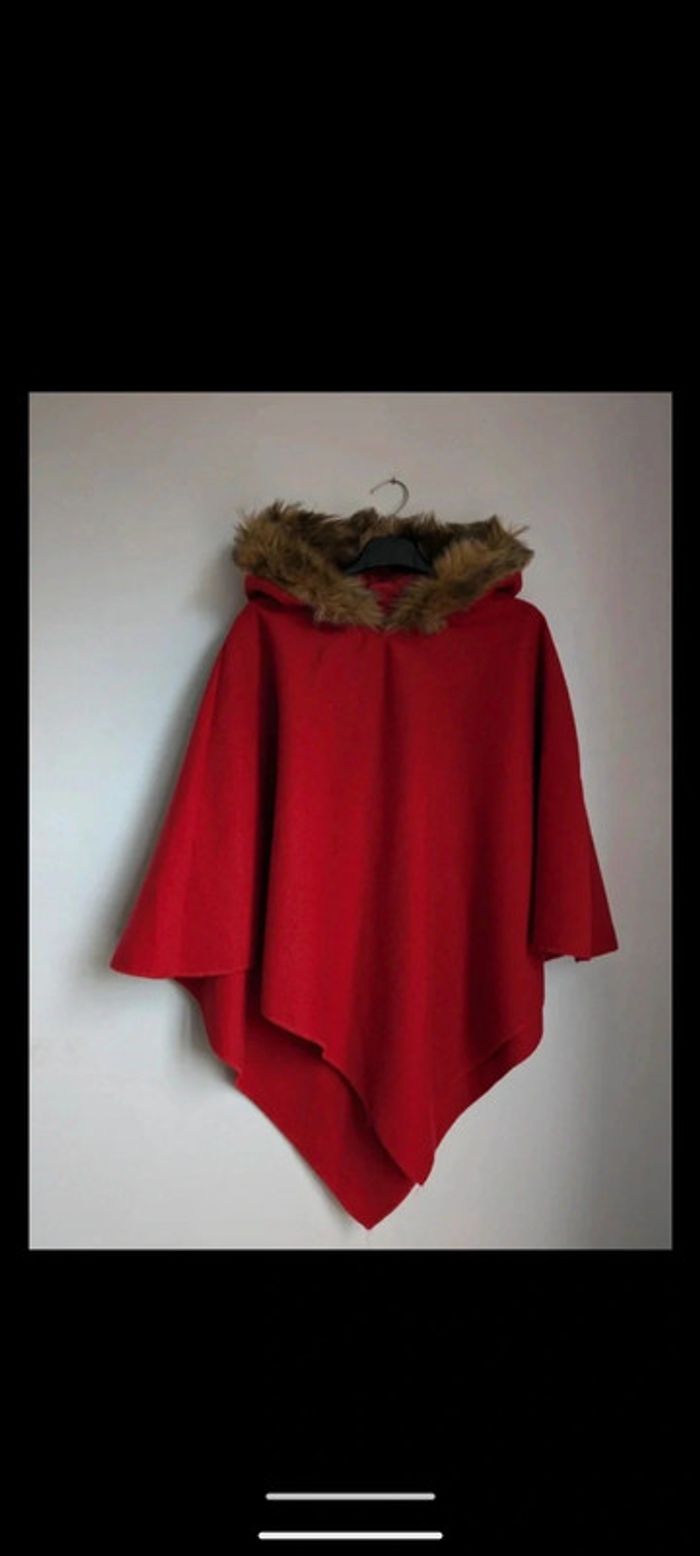 Cape rouge avec capuche fausse fourrure Made in Italie Très peu porté très bon état Sort du pressing