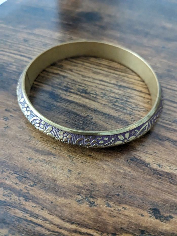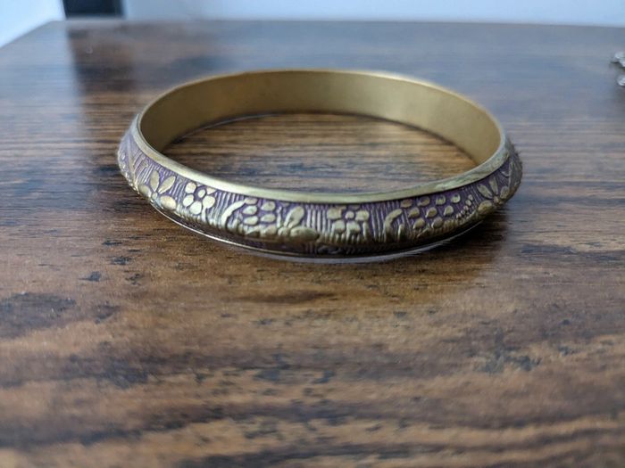 Bracelet doré et violet motif fleurs - photo numéro 1