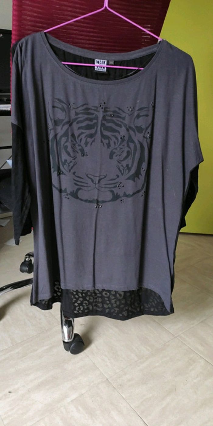 Tee-shirt manche mi longue Transparent en motif léopard sur les manches et tout le dos Taille xxl