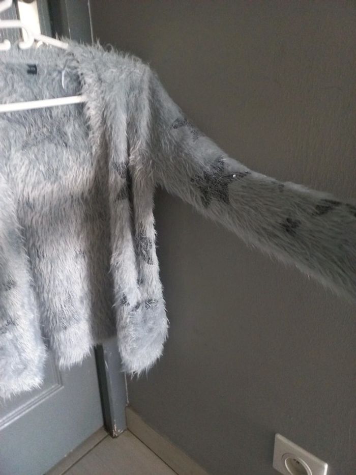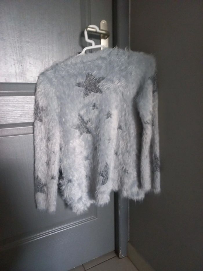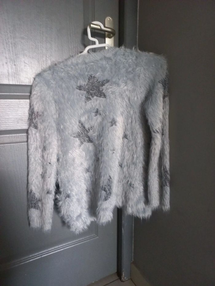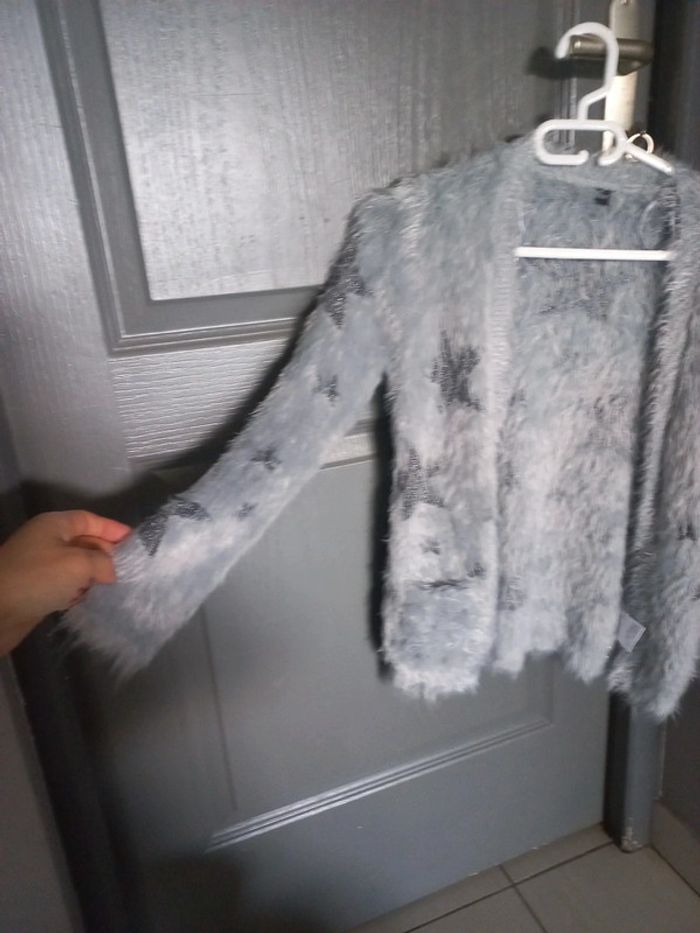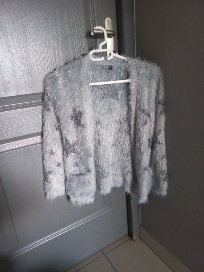 Vends 1 gilet fille tout doux gris avec motifs étoiles en polyamide.taille 10 ans. 6 euros